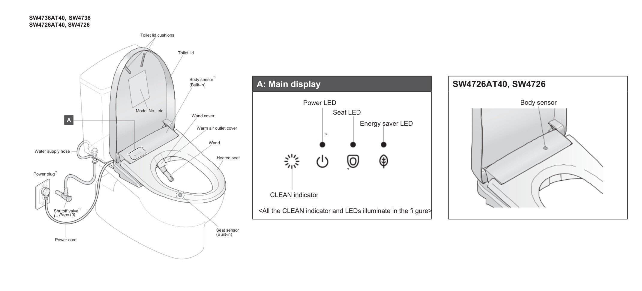 - Power LED: Indicates that the washlet is receiving electricity and is ready to operate. When it’s on, it means the unit is powered and functioning normally. When it’s off, it means the washlet has no power.