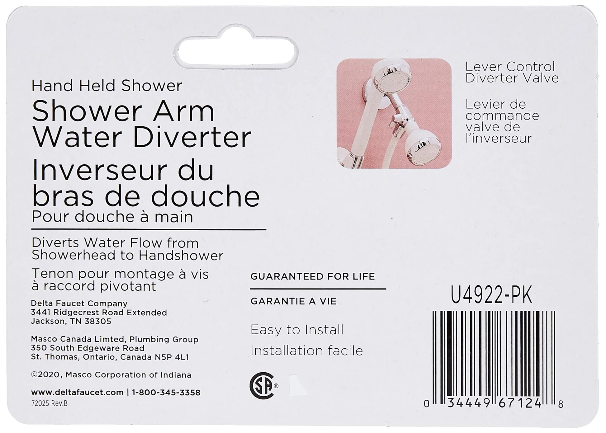 Delta Universal Showering Components U4922-PK Shower Arm Diverter for Hand Shower in Chrome Finish