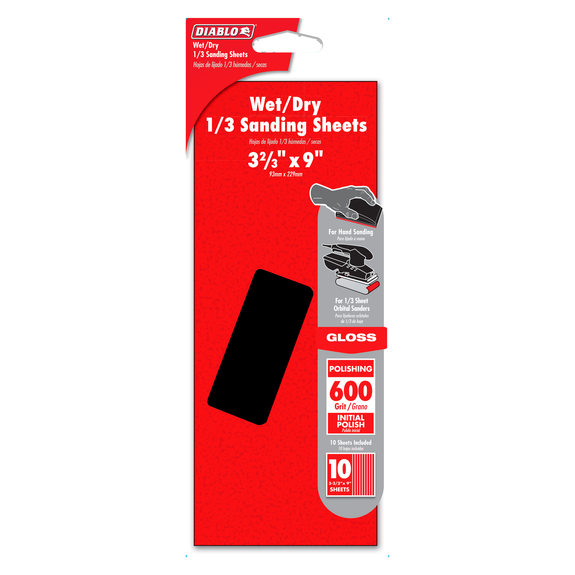 Diablo DCS323600S10W Wet/Dry 1/3 Sheet (3-2/3 in x 9 in.) 600-Grit (Polishing) Sanding Sheet (10-Piece)