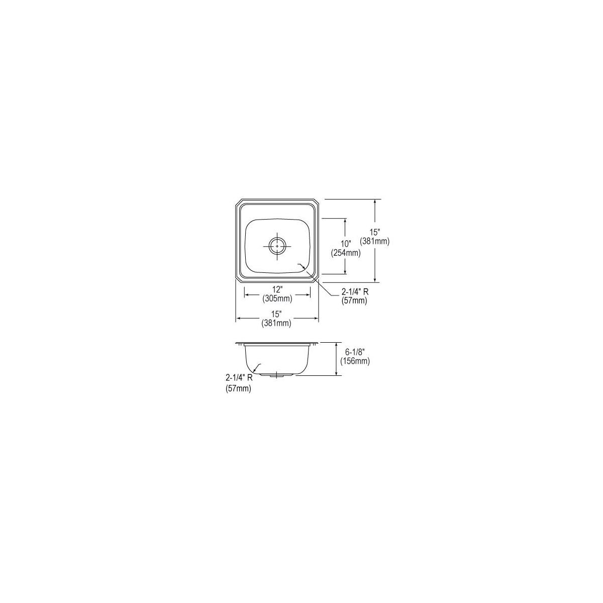 Elkay Celebrity Stainless Steel 15" x 15" x 6-1/8", 2-Hole Single Wide Bowl Drop-in Bar Sink