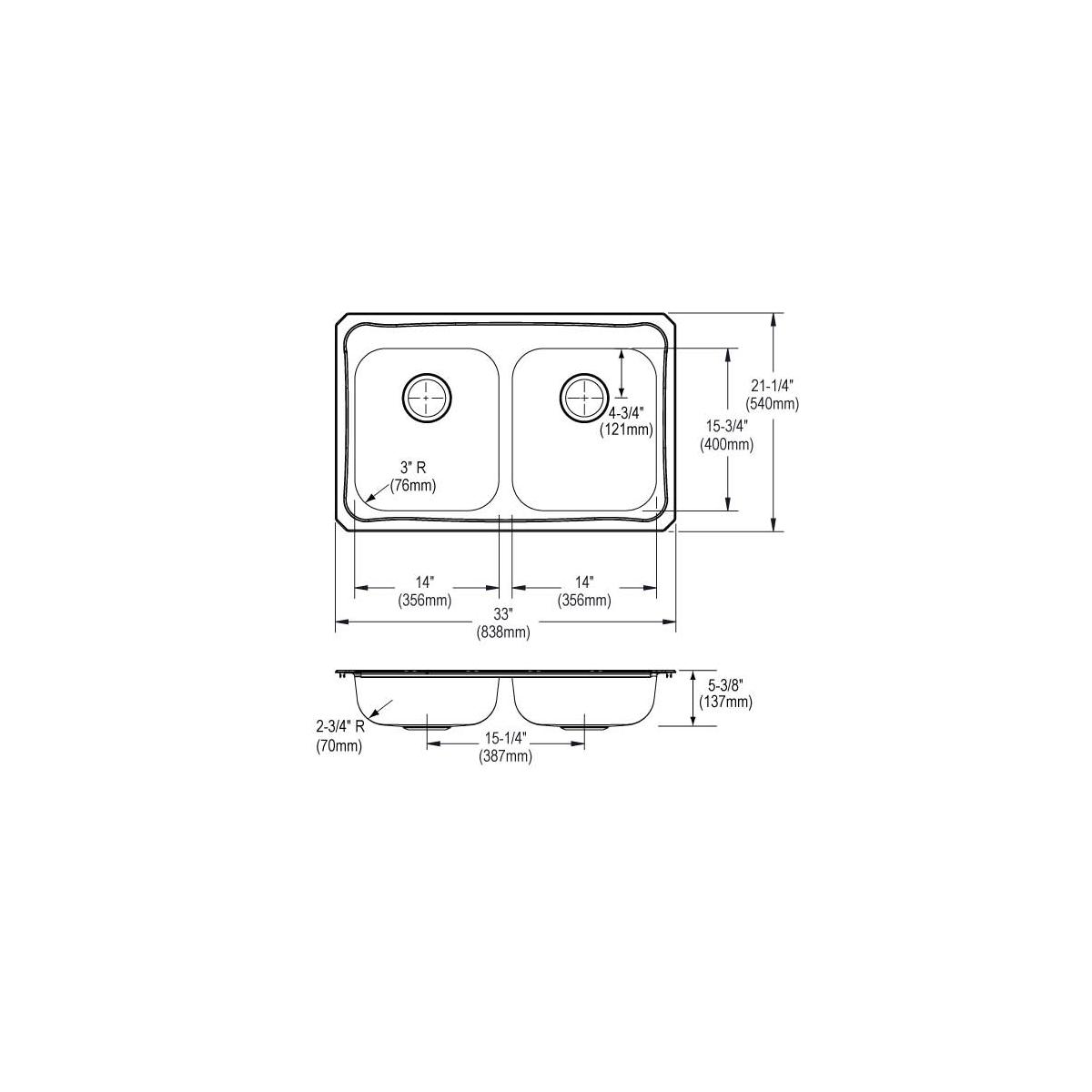 Elkay Celebrity Stainless Steel 33" x 21-1/4" x 5-3/8", 4-Hole Equal Double Bowl Drop-in Sink