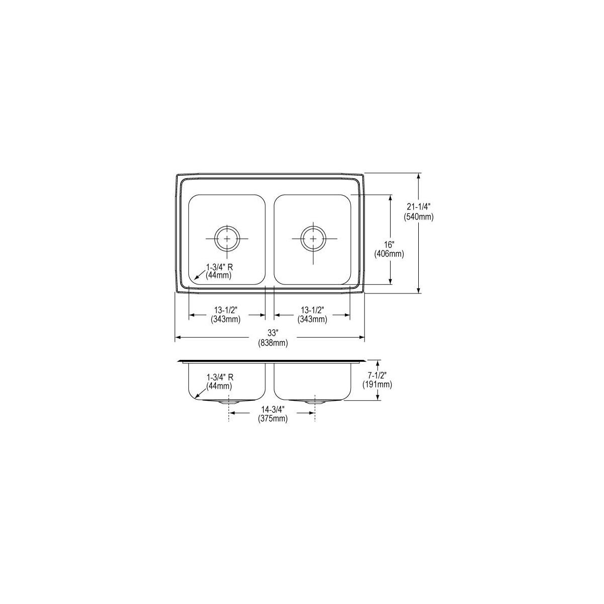 Elkay Celebrity Stainless Steel 33" x 21-1/4" x 7-1/2", 4-Hole Equal Double Bowl Drop-in Sink