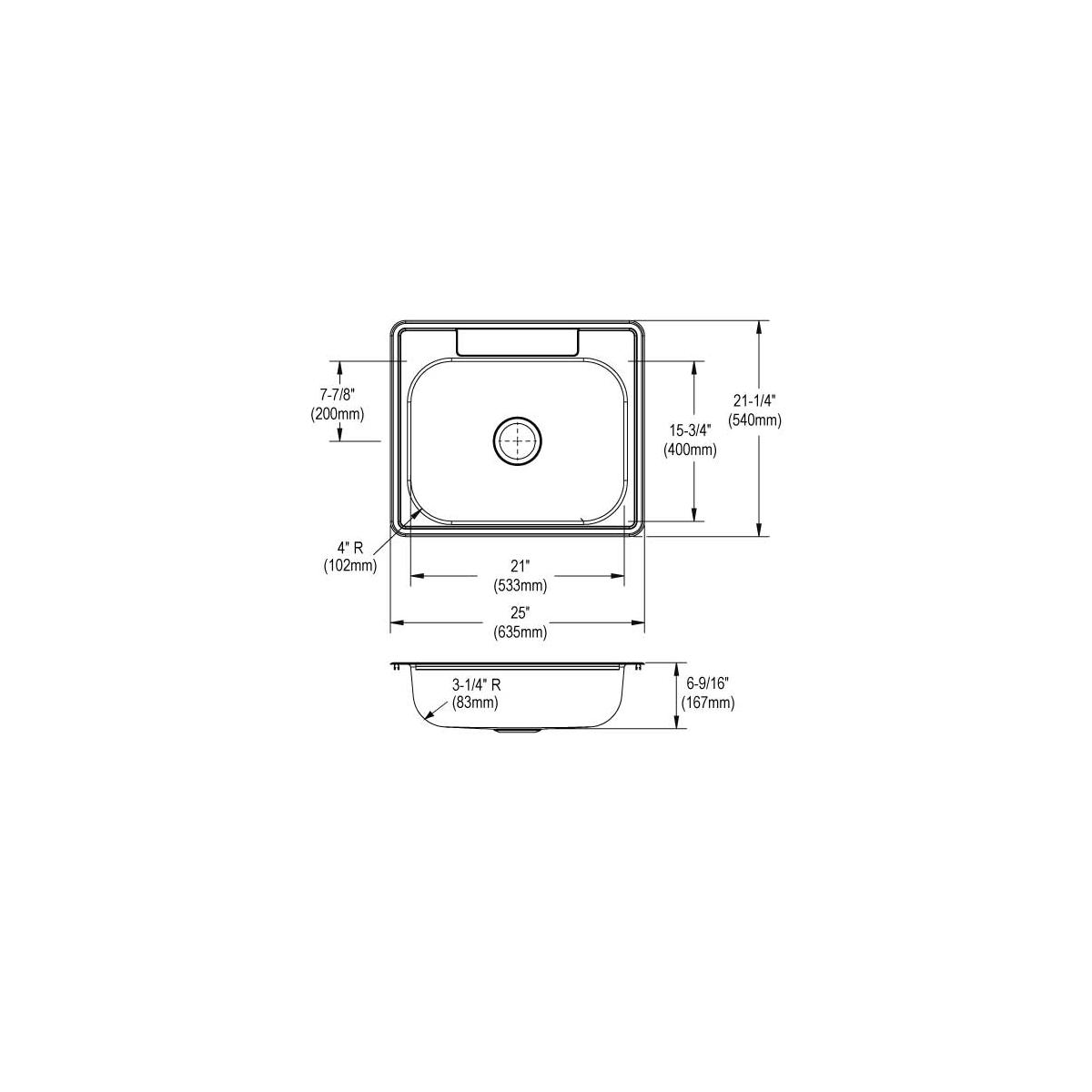 Elkay Dayton Stainless Steel 25" x 21-1/4" x 6-9/16" 3-Hole Single Bowl Drop-in Sink