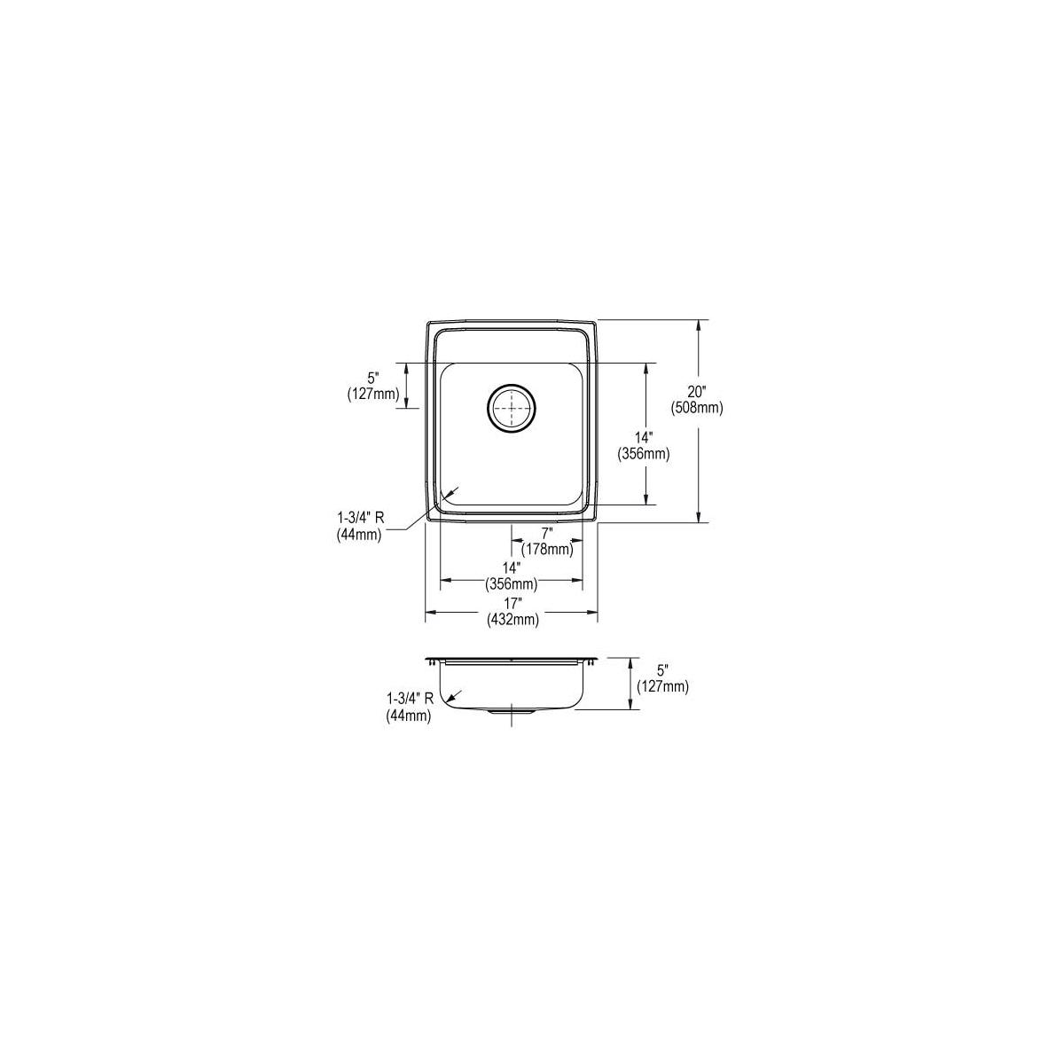 Elkay Lustertone Classic Stainless Steel 17" x 20" x 5" 1-Hole Single Bowl Drop-in ADA Sink