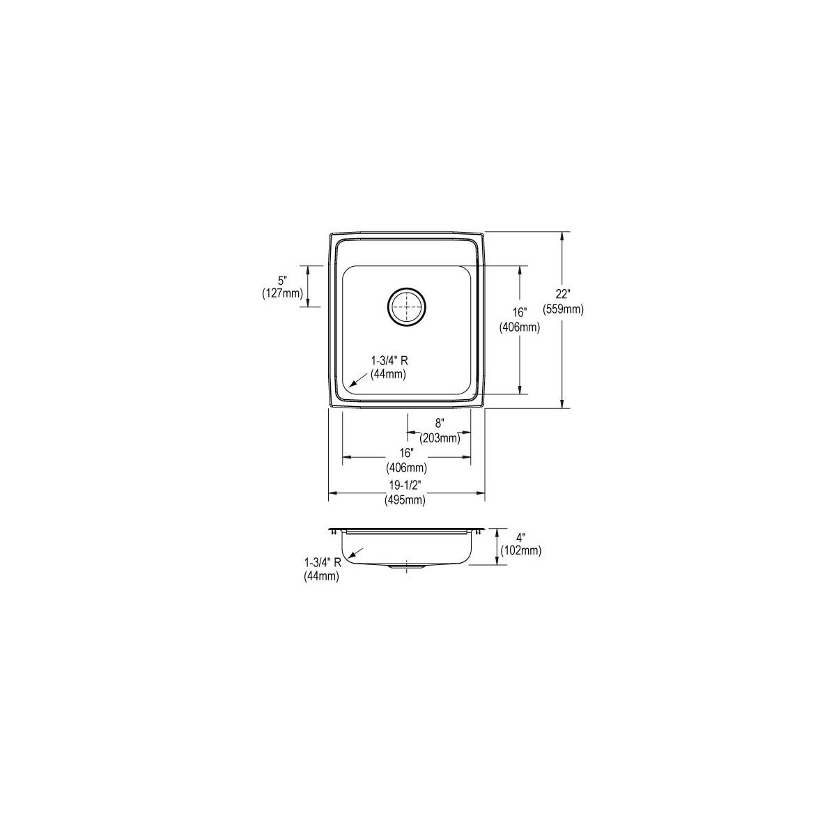 Elkay Lustertone Classic Stainless Steel 19-1/2" x 22" x 4", 0-Hole Single Bowl Drop-in ADA Sink