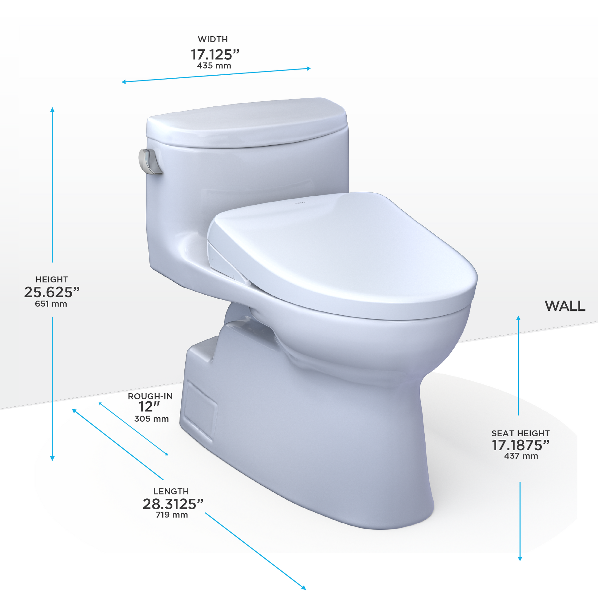 Toto Carolina II One Piece Elongated Universal Height Toilet with CEFIONTECT 1.28 GPF with Contemporary Washlet+ S7 Bidet Seat in Cotton White