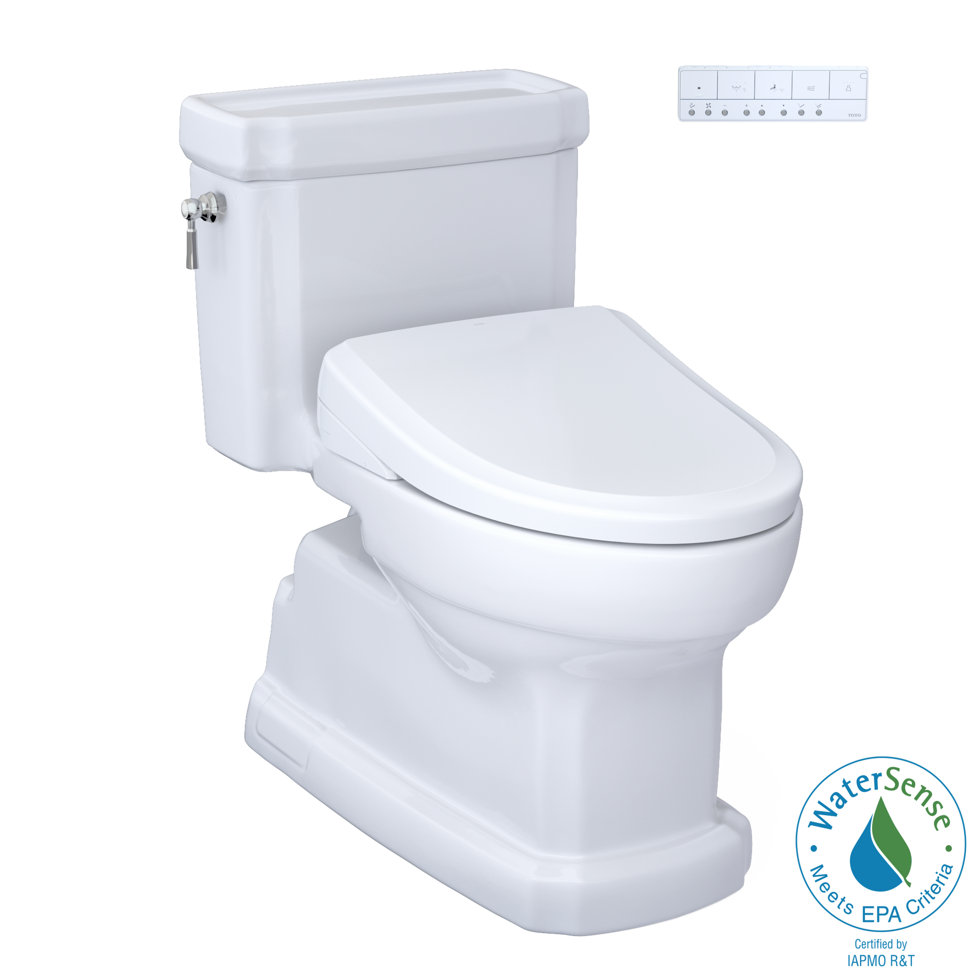 - WASHLET+ bidet seat and one-piece toilet, specially designed to conceal the WASHLET water supply and power cord for seamless integration