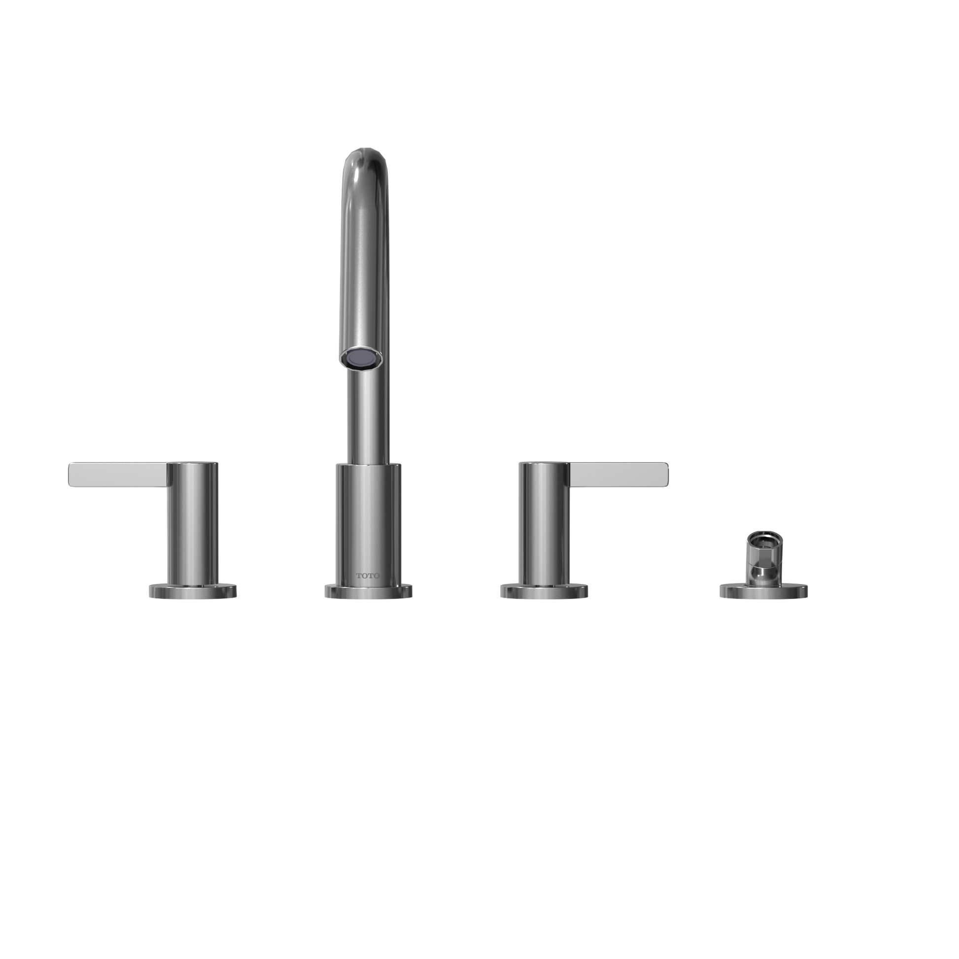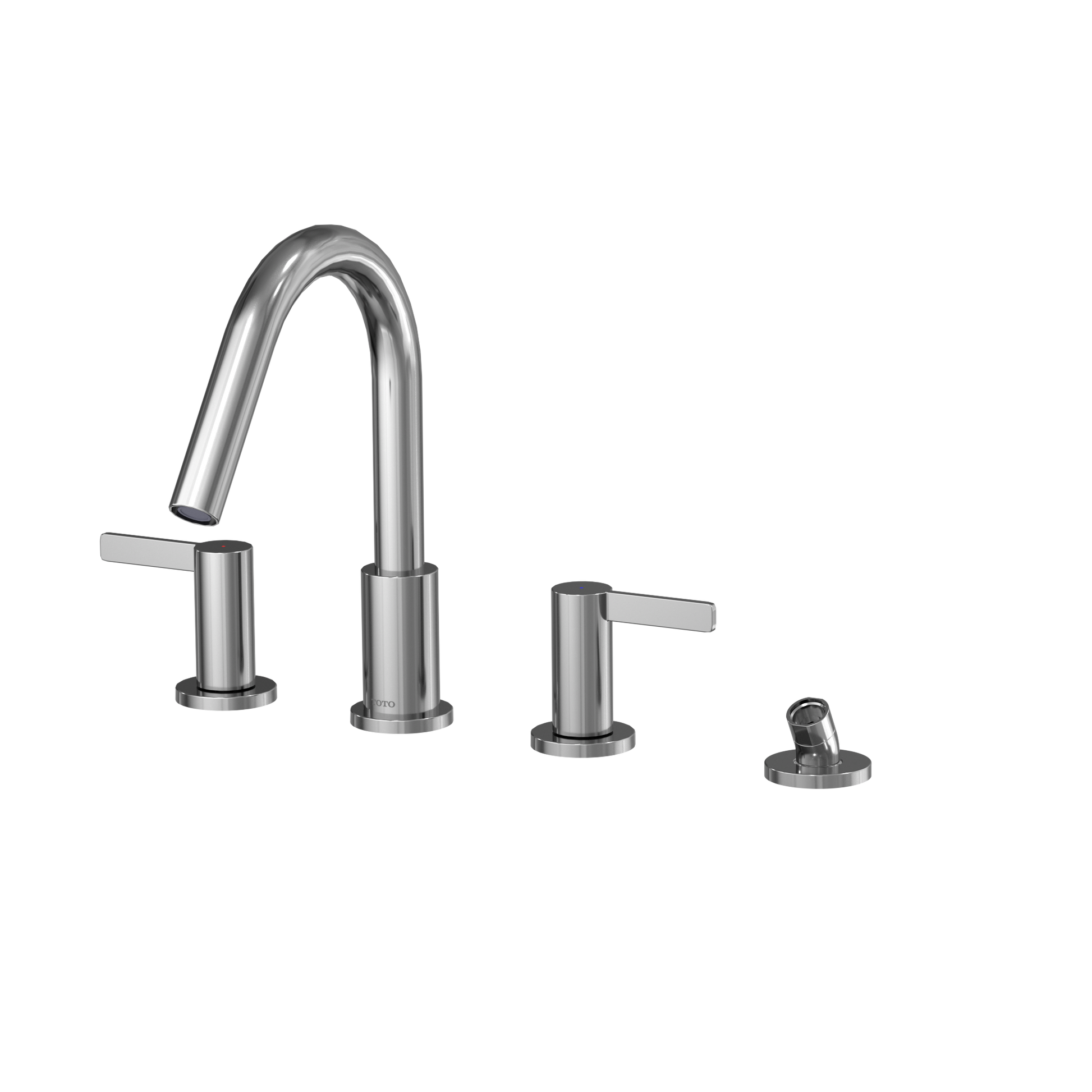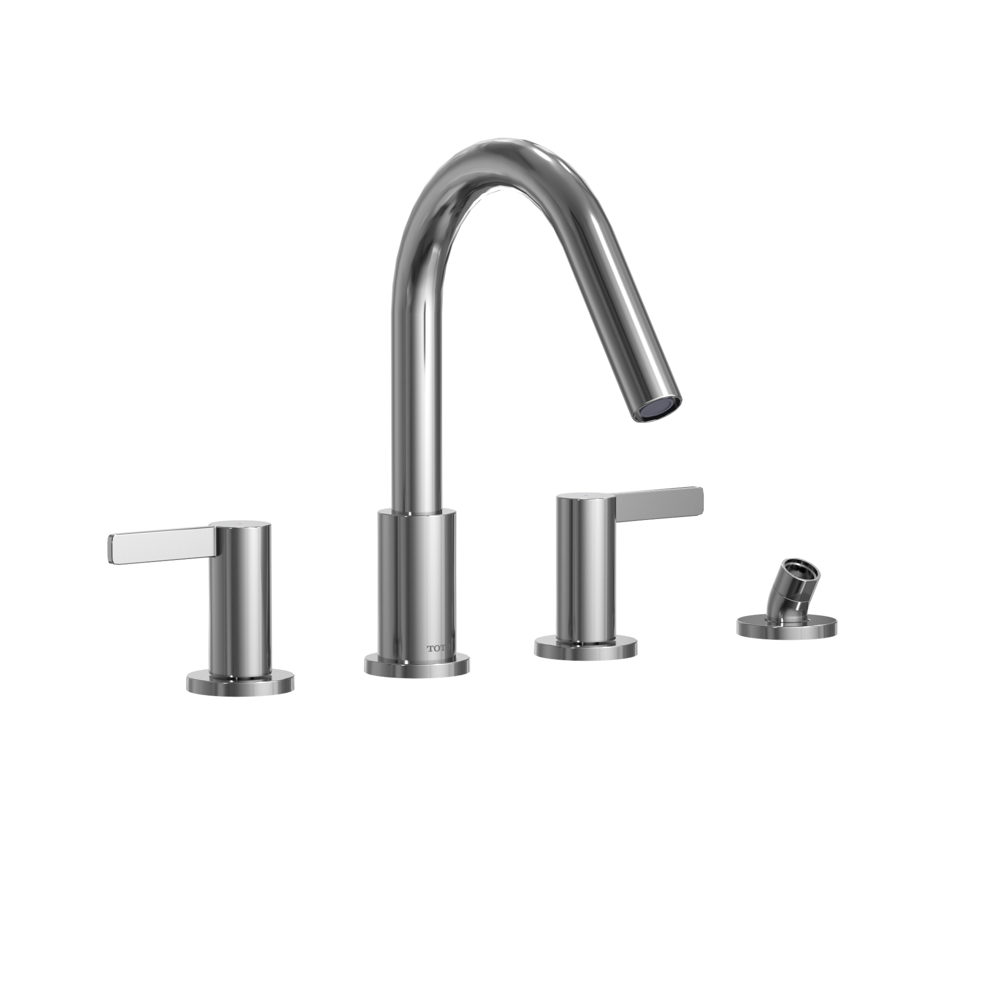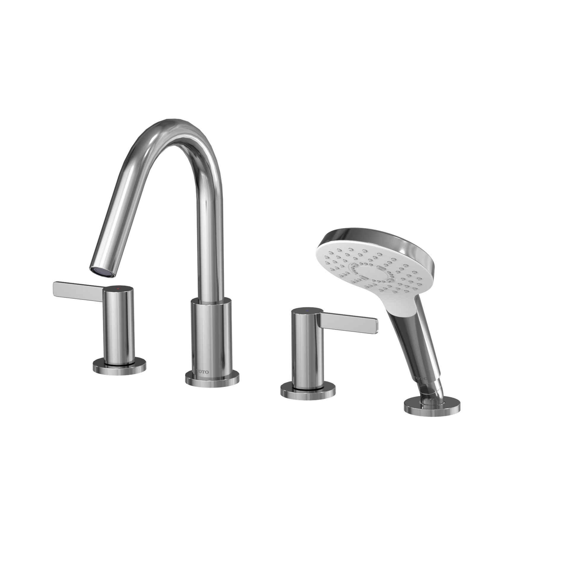 Toto GF Two Lever Handle Deck-Mount Roman Tub Filler Trim With Handshower, Polished Chrome