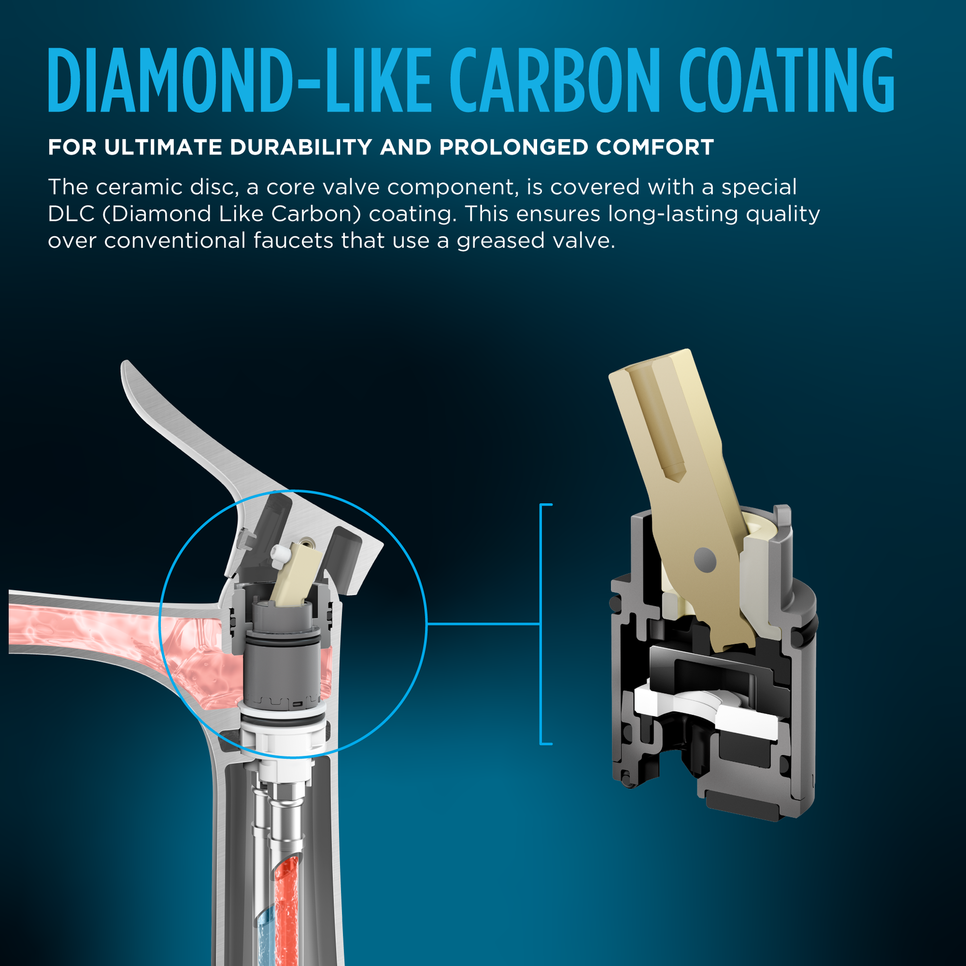 - HANDLE DOESN'T STICK OR BECOME LOOSE OVER TIME - COMFORT GLIDE ceramic discs feature a Diamond-Like Carbon coating, protecting against friction and ensuring long-lasting operability. A lifetime of smooth handle control at your fingertips.