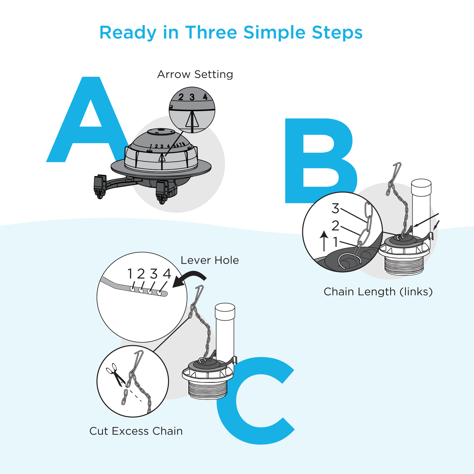 - Flapper includes chain along with instructions for set-up specific to TOTO tank model